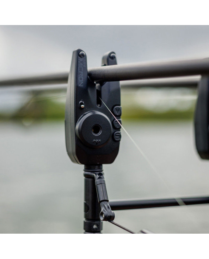 Fox Mini Micron Multicolour Bite Alarm, The Mini Micron v2 Multicolour with two 5mm High Vis Multi coloured LEDs, Green, Blue, Red and Orange. A modern re-worked version of the old school classic Mini Micron Bite Alarm boasting a number of great new features. Top tip: For the best bite indication always use in conjunction with a bobbin, hanger or Swinger