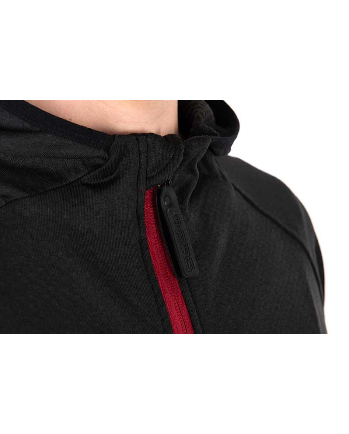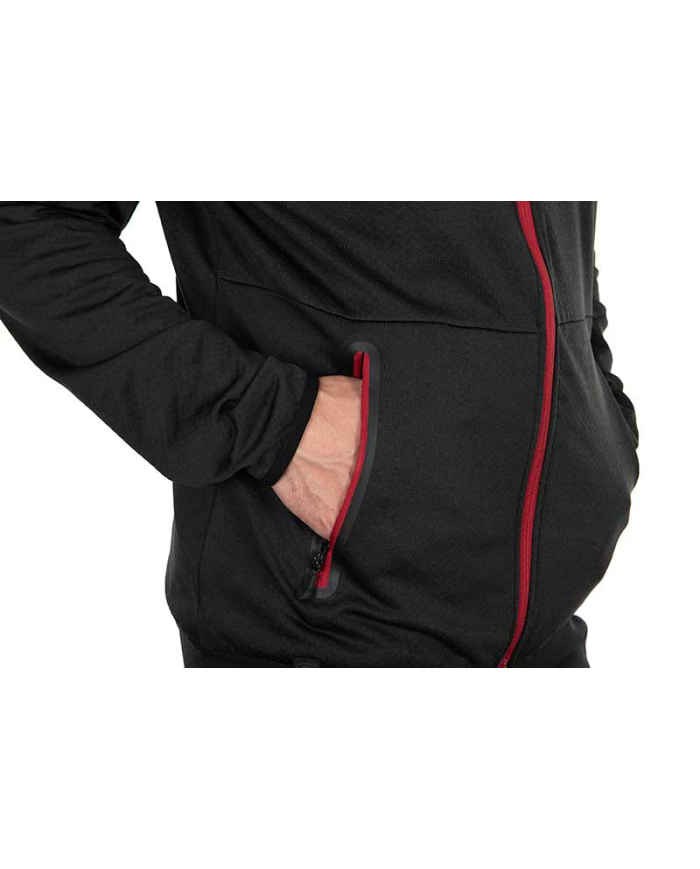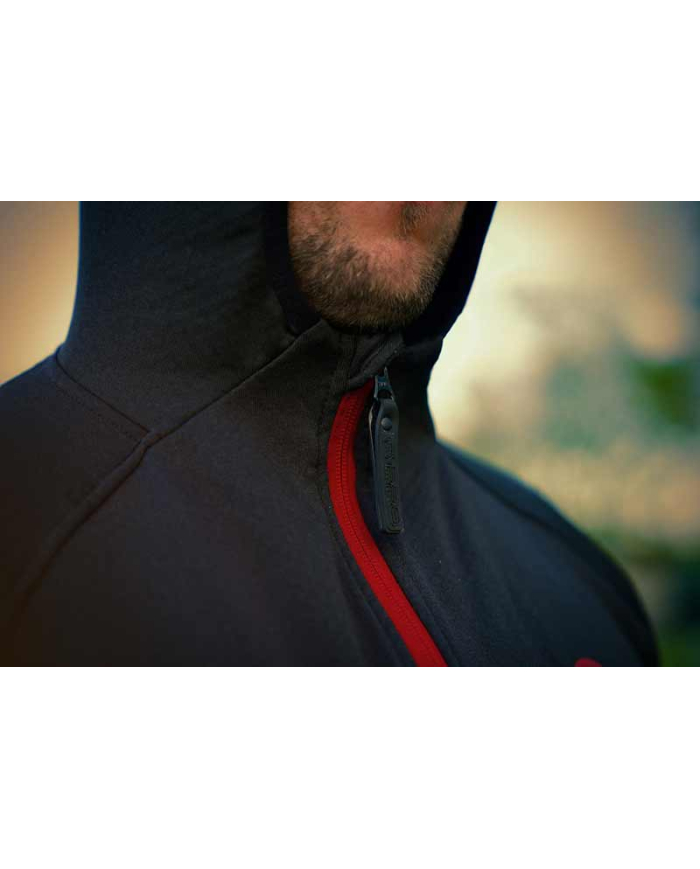 The Fox Rage Pro Series Technical Hoody is made of 95% polyester and 5% elastane and is available in different sizes. The hoody has a drawstring collar and zippered storage pockets. It matches perfectly with the new Pro Series pants and comes in the new Pro Series Storm Grey/Chilli Red color scheme.