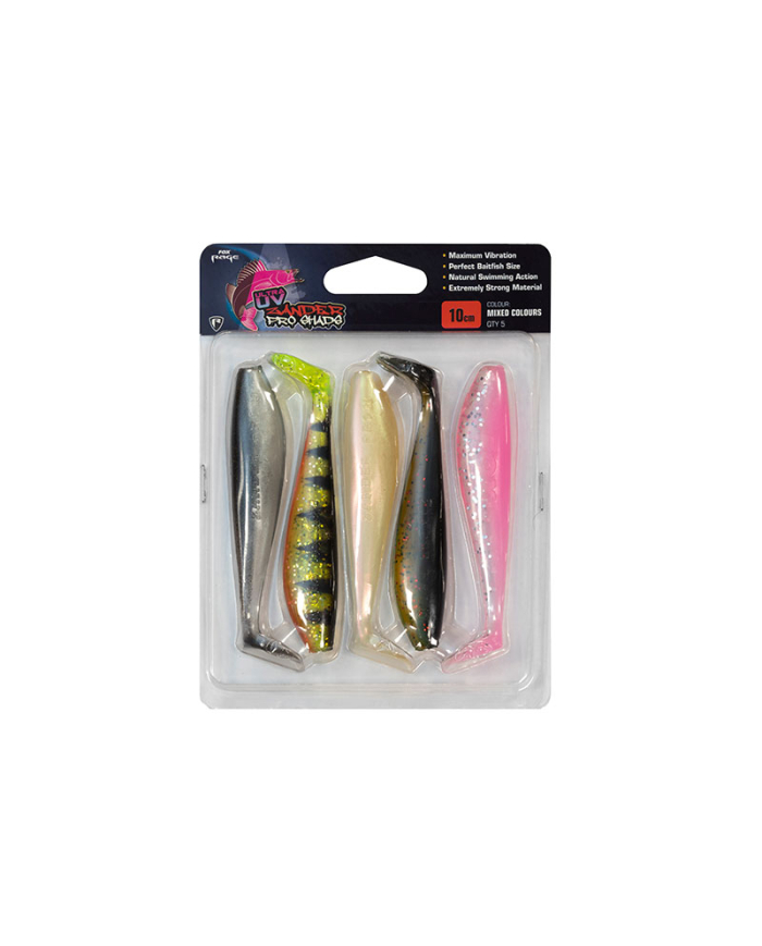 The Fox Zander Pro Shad UV Mixed Colour Packs will give you the visual edge when you are lure fishing. These handy lure packs offer you multiple colours in a pack to cover a range of scenarios. These incredibly soft paddle tail lures give you incredible amounts of movement due to their thin wrist and large paddle tail design. This gives the lure an incredibly realistic swimming action even when fished on ultra slow speeds. The UV colouration on the body of these lures and the various colours in the pack is sure to have you catching every session. These lures are extremely versatile allowing you to rig them however you choose with a jighead, weedless and dropshot rigs all compliment these lures very well and allow you to use a range of tactics to suit the conditions.