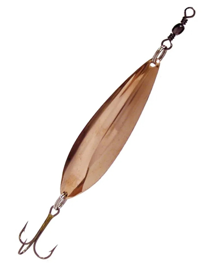 This slender 3 inch spoon is made from solid copper which is then nickel plated to give a long lasting, perfectly weighted spoon, especially suitable for salmon and pike. 20 gram.