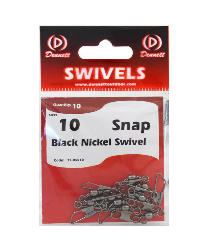 The Dennett Snap Swivels are fitted with a convenient clip to allow you to easily and quickly change your lures and rigs. These snap swivels are made from quality materials and are robust and reliable. The Dennett Snap Swivels have a black nickel colours, are available in a wide range of sizes and are supplied with 10 per pack.